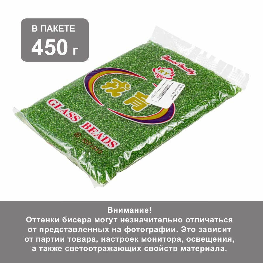 Бисер 12/0 зеленый прозрачный радужный №167, 450 гр, некалиброванный