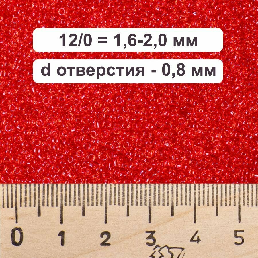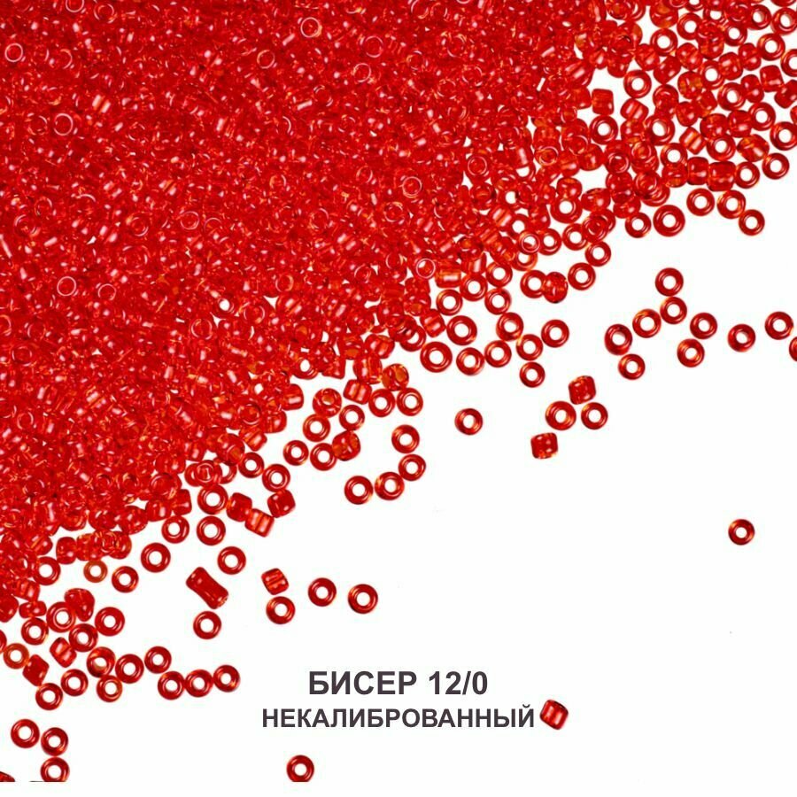 Бисер 12/0 красный прозрачный радужный №165, 450 гр, некалиброванный