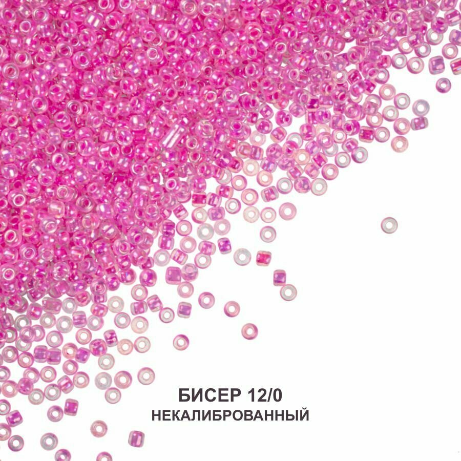 СохранитьБисер 12/0 прозрачный радужный с розовым стержнем №204, 450 гр, некалиброванный интересное: