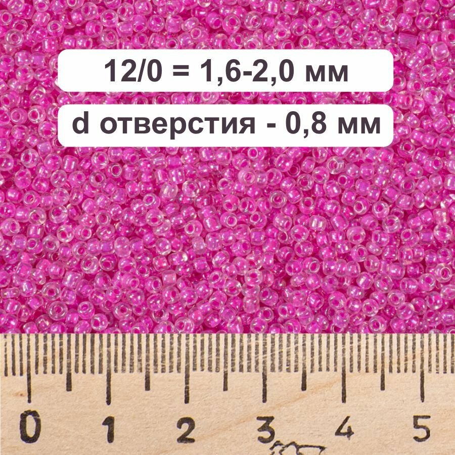 Бисер 12/0 прозрачный радужный с ярко-розовым стержнем №213/1, 450 гр, некалиброванный