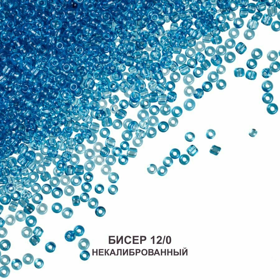 Купить Бисер 12/0 голубой прозрачный №3В, 450 гр, некалиброванный