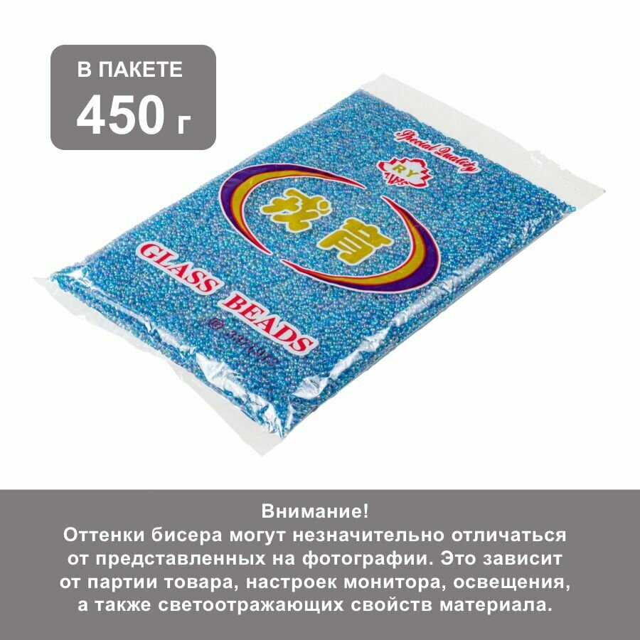 Купить Бисер 12/0 голубой прозрачный радужный №163, 450 гр, некалиброванный
