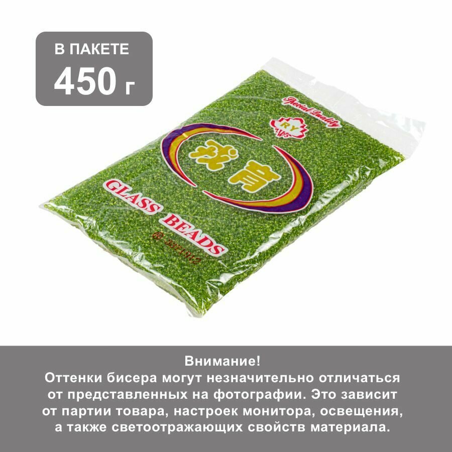 Купить Бисер 12/0 св. зеленый прозрачный №4, 450 гр, некалиброванный