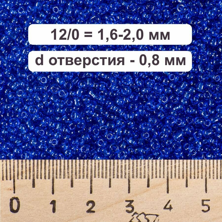 Купить Бисер 12/0 васильковый прозрачный №8, 450 гр, некалиброванный