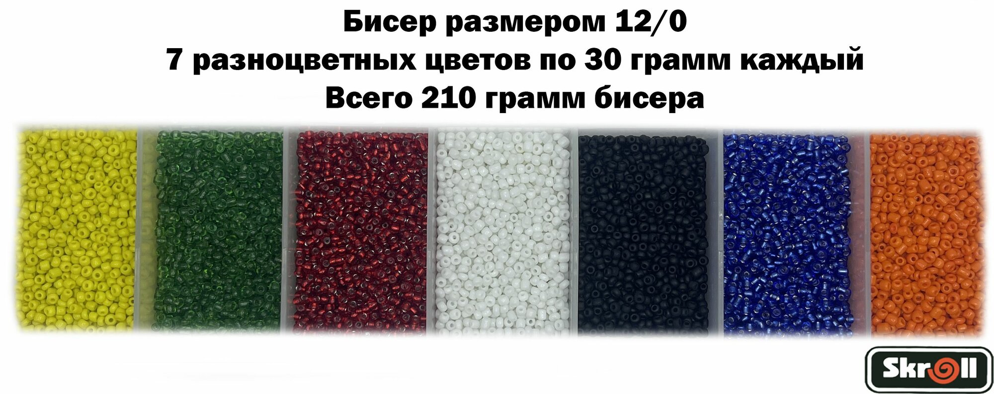 Бисер для рукоделия круглый без органайзера, 7 разноцветных цветов по 30 грамм, размер 12/0, 210 г/ Skroll интересное:
