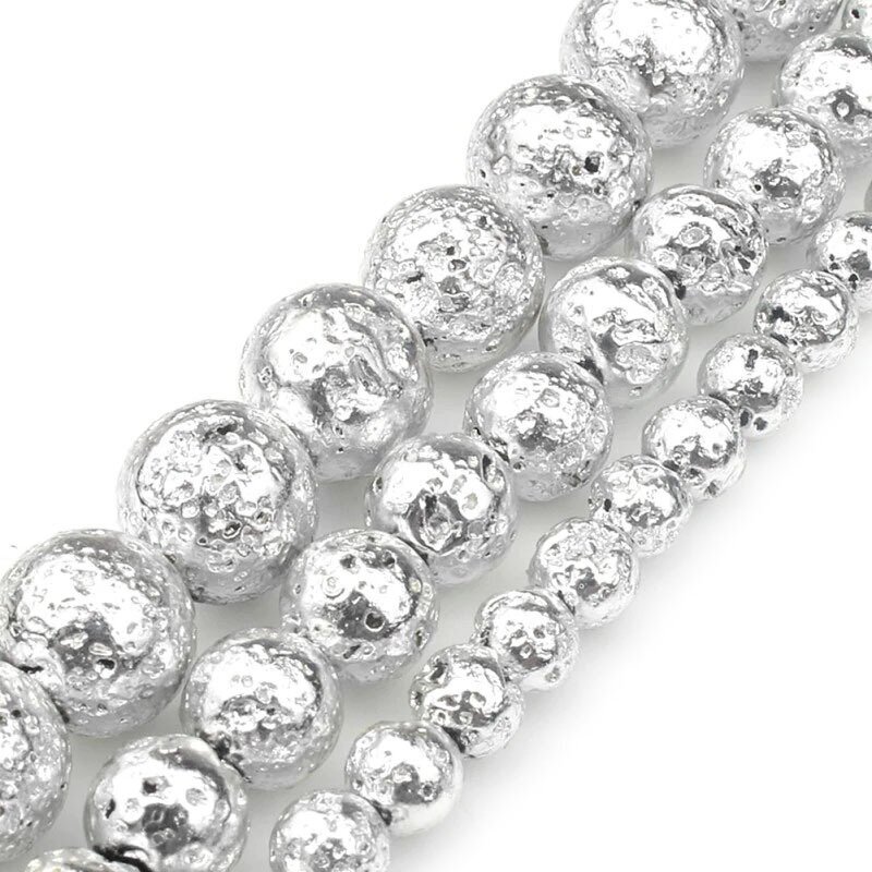 Купить Лава вулканическая бусины шарик 10 мм, 38 см/нить, около 37 шт, цвет: Серебро
