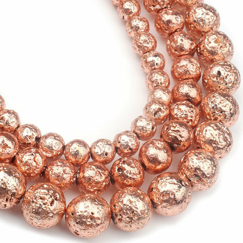 Купить Лава вулканическая бусины шарик 8 мм, 38 см/нить, около 45 шт, цвет: Розовое Золото