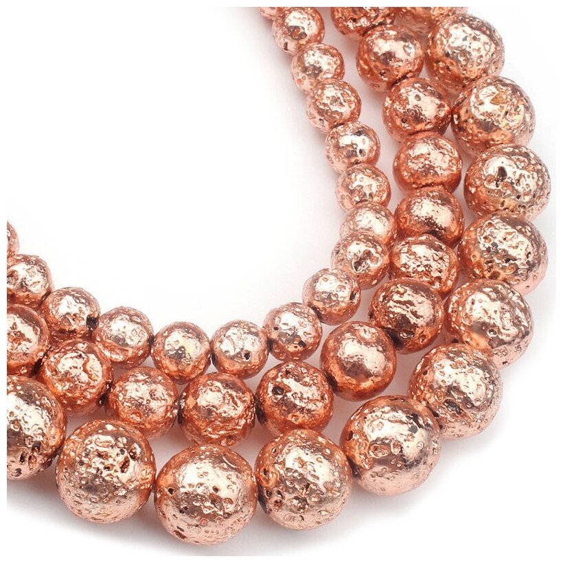 Купить Лава вулканическая бусины шарик 6 мм, 38 см/нить, около 62 шт цвет: Розовое Золото