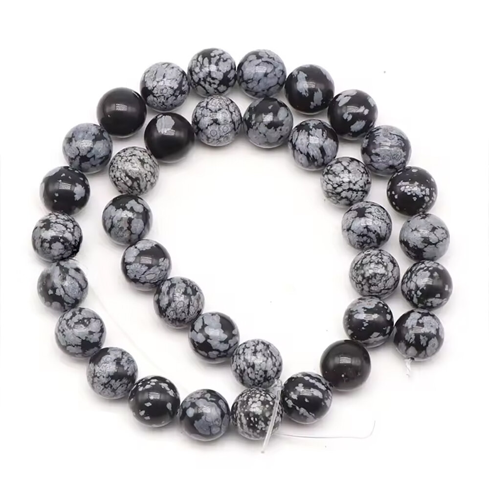 KamenOpt / Обсидиан Снежный, бусины 10 мм, на нитке 38 см, из натурального камня
