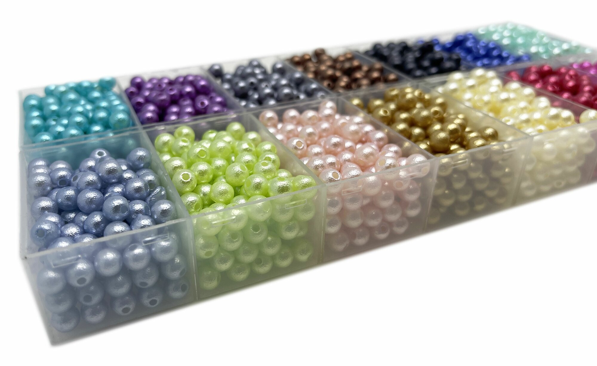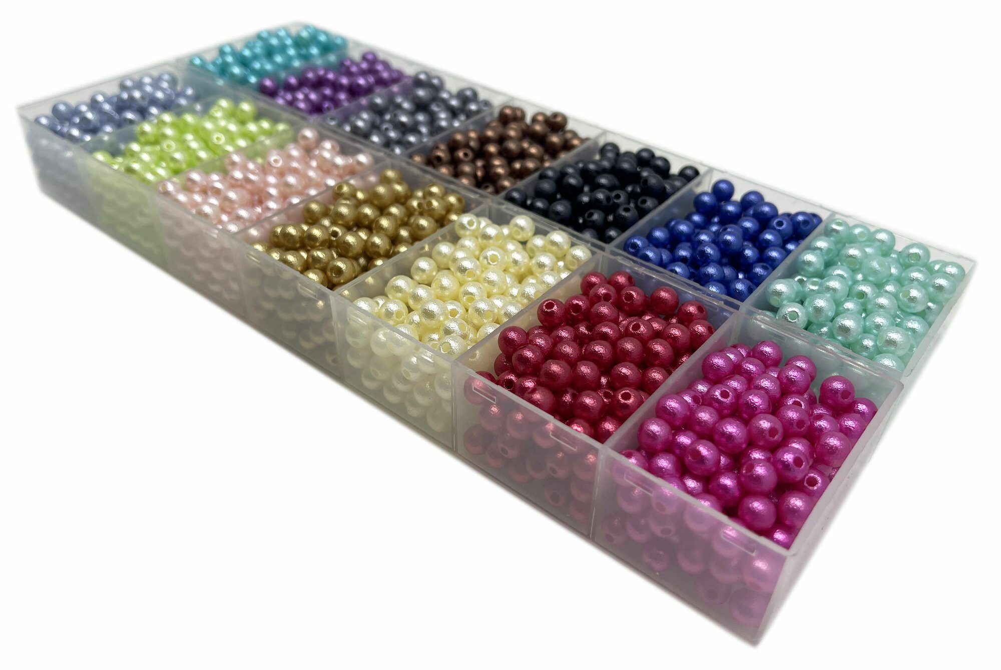 Бусины с органайзерами под жемчуг 6 мм 21 цвет по 20 грамм/ 3400 бусин разных цветов/ Skroll