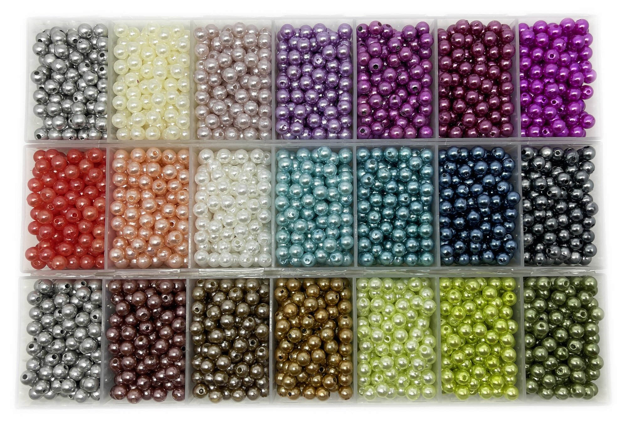 Купить Бусины с органайзерами под жемчуг 6 мм 21 цвет по 20 грамм/ 3400 бусин разных цветов/ Skroll