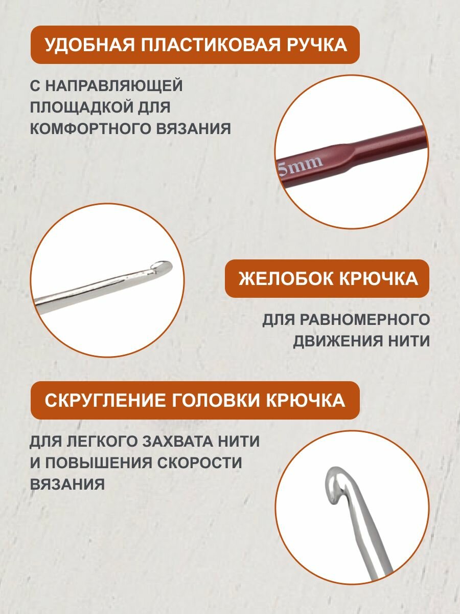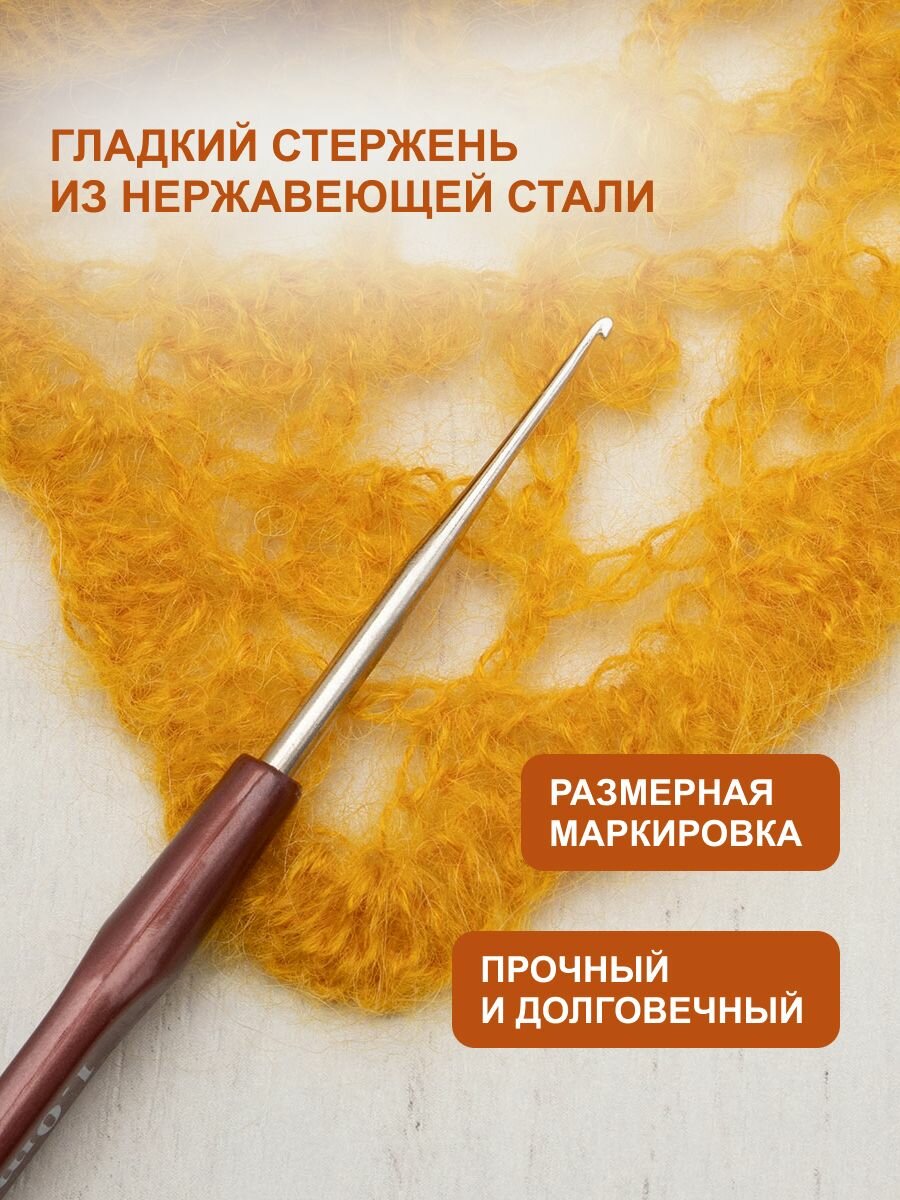 Крючок для вязания с резиновой ручкой и выемкой для пальца, диаметр 5 мм, длина 16,2 см, Hobby&Pro