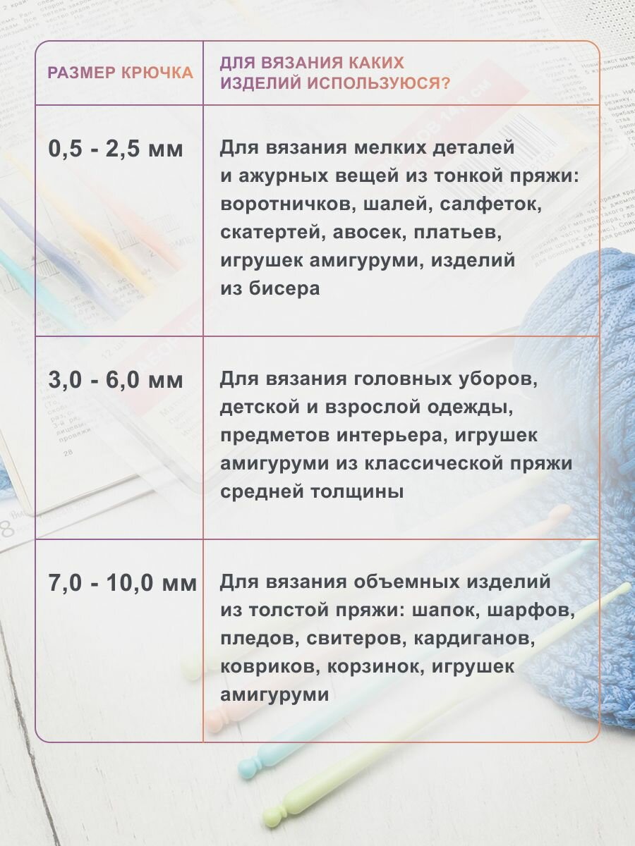 Ниже Вы можете прочитать отзывы на Набор крючков для вязания цветных Hobby&Pro, L200-127, диаметр 2-10 мм, длина 14,8 см, пластик, 12 шт, ознакомится с подробными характеристиками, посмотреть интересные обзоры и фотографии на Набор крючков для вязания цветных Hobby&Pro, L200-127, диаметр 2-10 мм, длина 14,8 см, пластик, 12 шт.