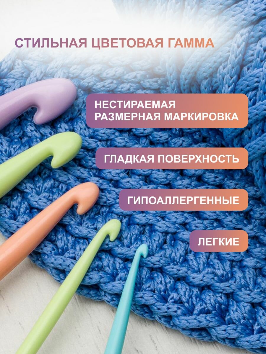 Купить Набор крючков для вязания цветных Hobby&Pro, L200-127, диаметр 2-10 мм, длина 14,8 см, пластик, 12 шт