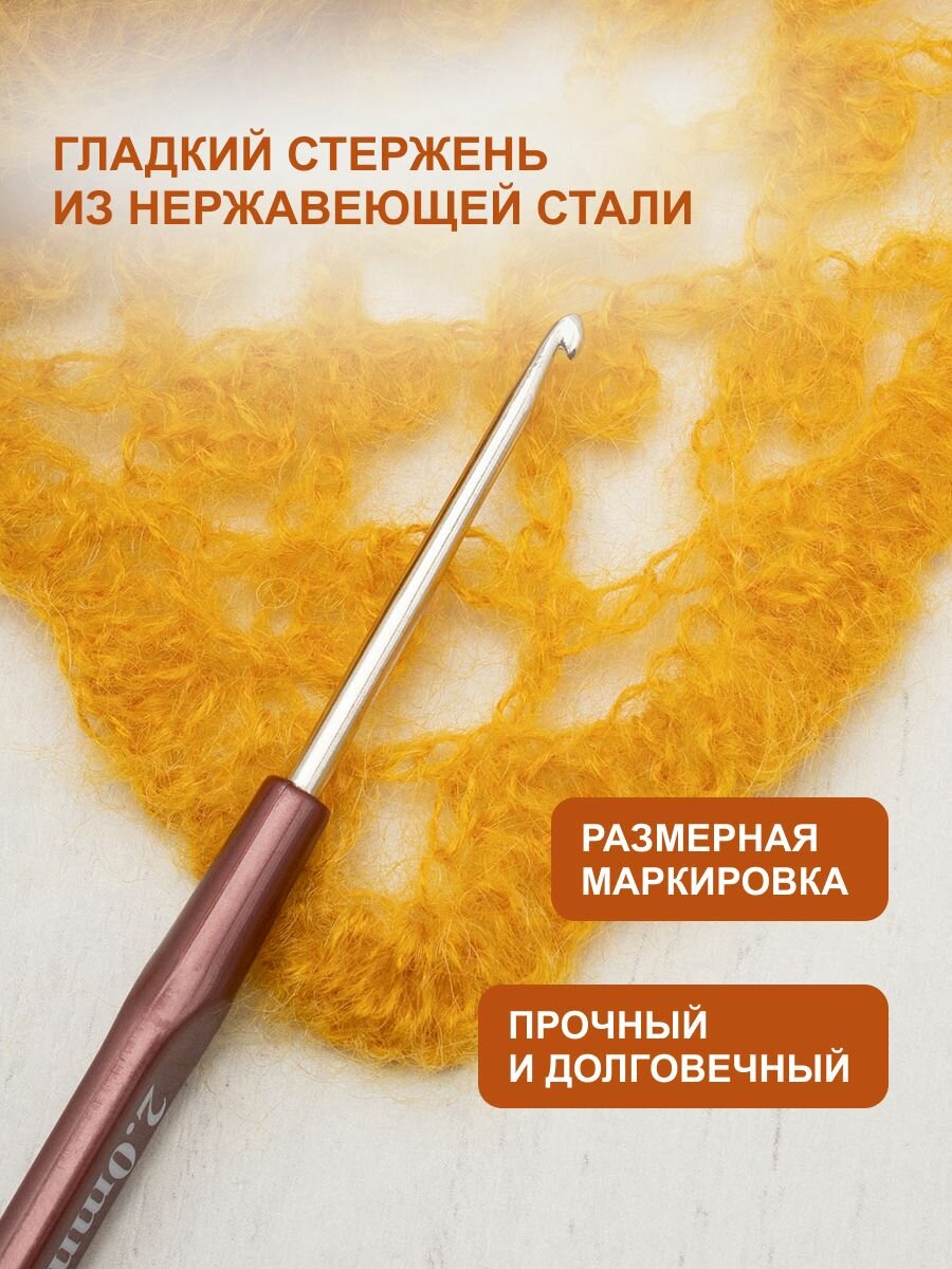 Крючок для вязания с резиновой ручкой и выемкой для пальца, диаметр 2 мм, длина 16,2 см, Hobby&Pro, 953200