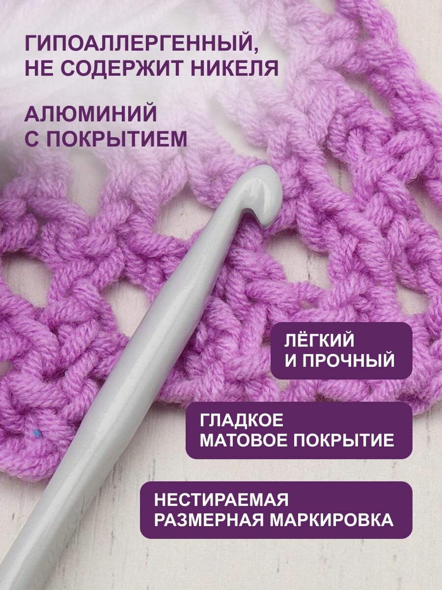 Крючок для вязания с резиновой ручкой и выемкой для пальца, диаметр 5 мм, длина 16,2 см, Hobby&Pro