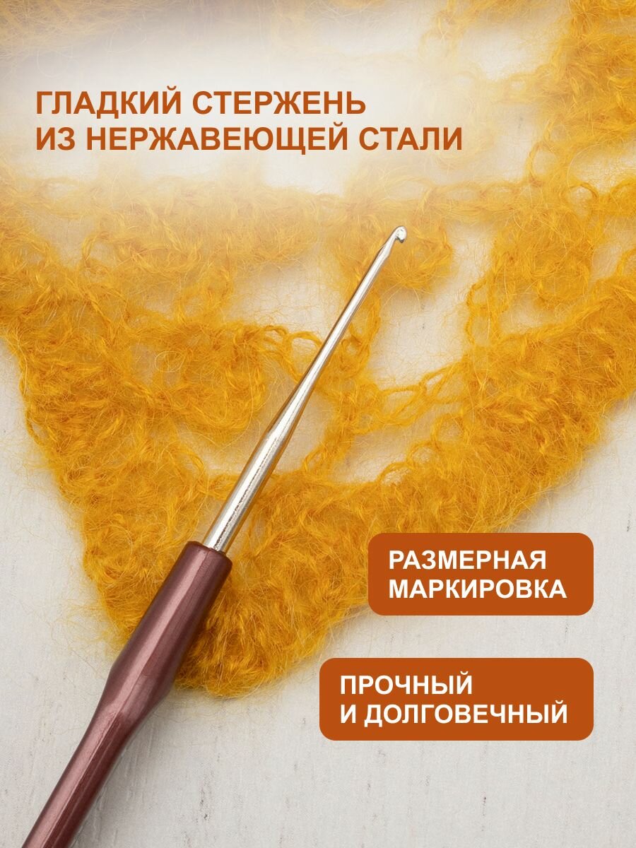 Крючок для вязания с резиновой ручкой и выемкой для пальца, диаметр 5 мм, длина 16,2 см, Hobby&Pro