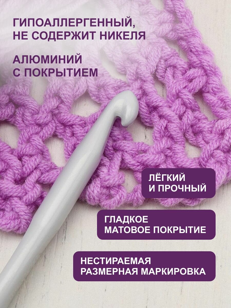 Крючок для вязания с резиновой ручкой и выемкой для пальца, диаметр 5 мм, длина 16,2 см, Hobby&Pro