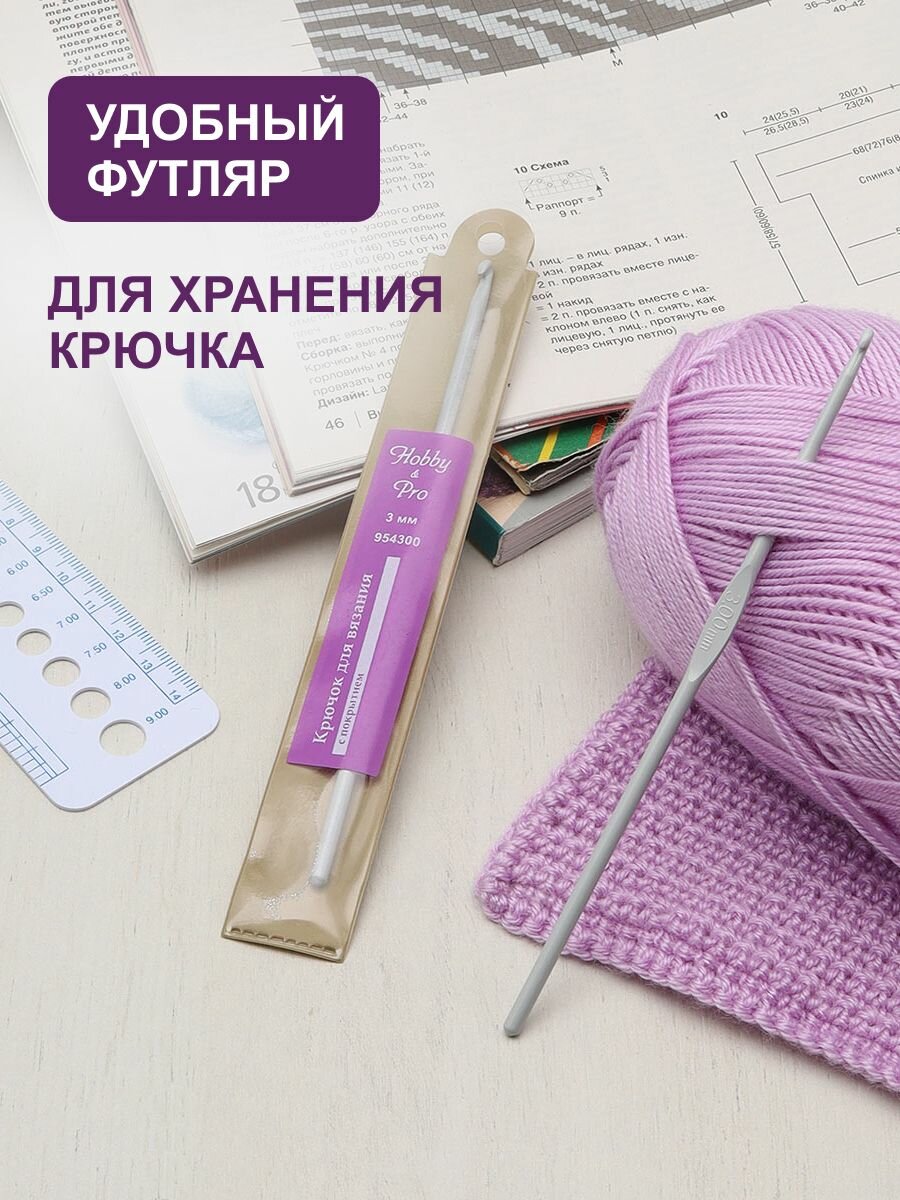Крючок для вязания с резиновой ручкой и выемкой для пальца, диаметр 3 мм, длина 16,2 см, Hobby&Pro