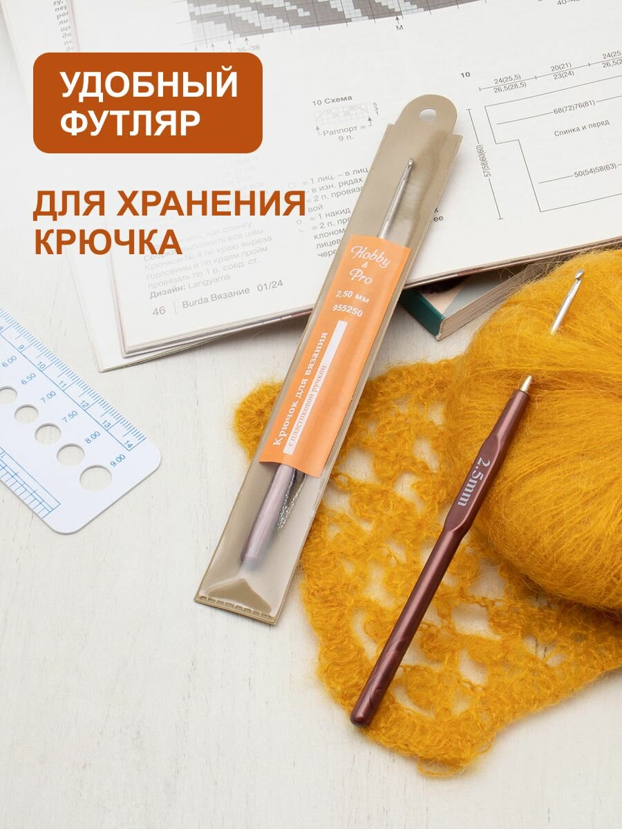 Крючок для вязания с резиновой ручкой и выемкой для пальца, диаметр 2,5 мм, длина 16,2 см, Hobby&Pro, 953250