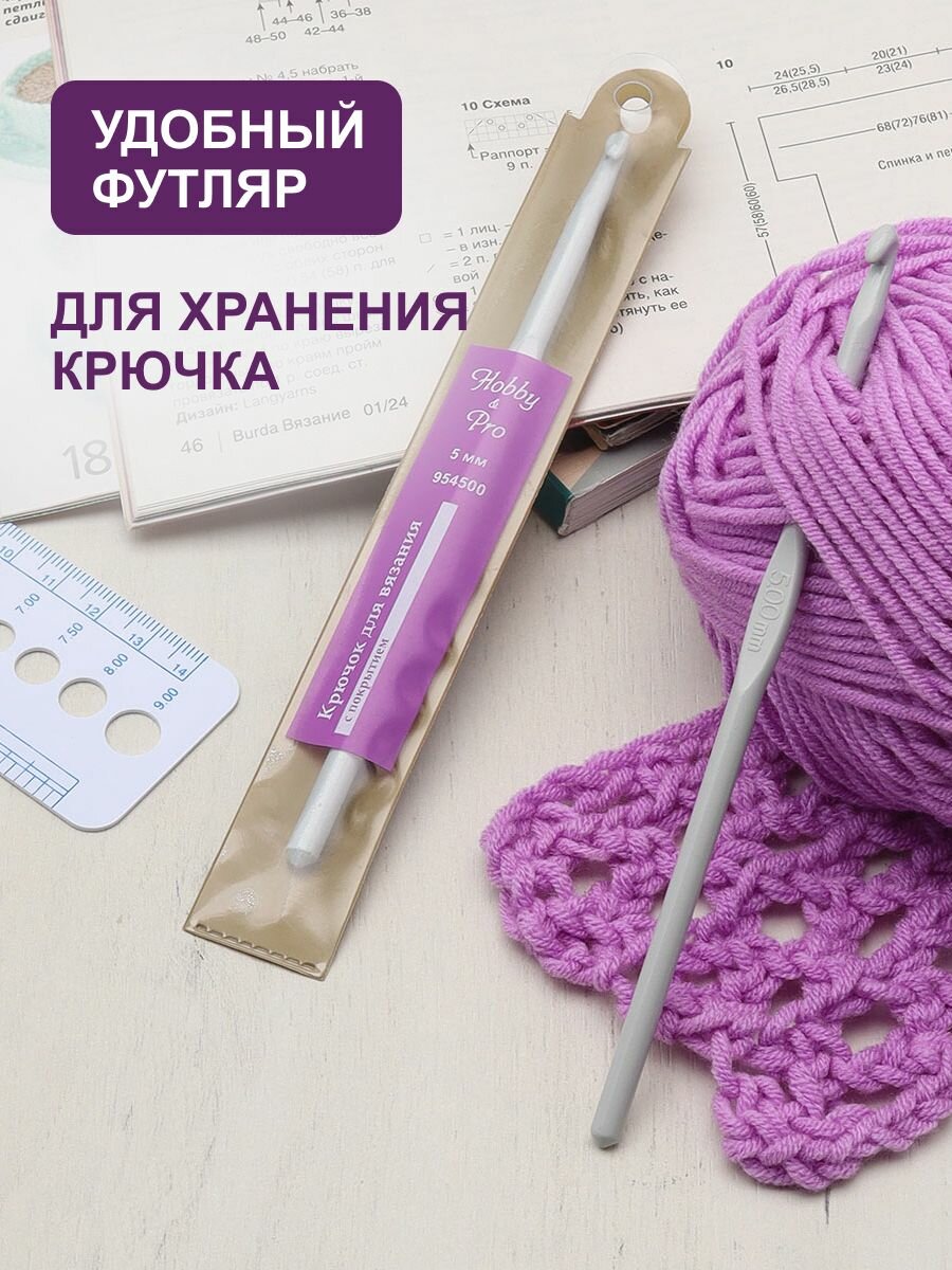 Крючок для вязания с резиновой ручкой и выемкой для пальца, диаметр 5 мм, длина 16,2 см, Hobby&Pro