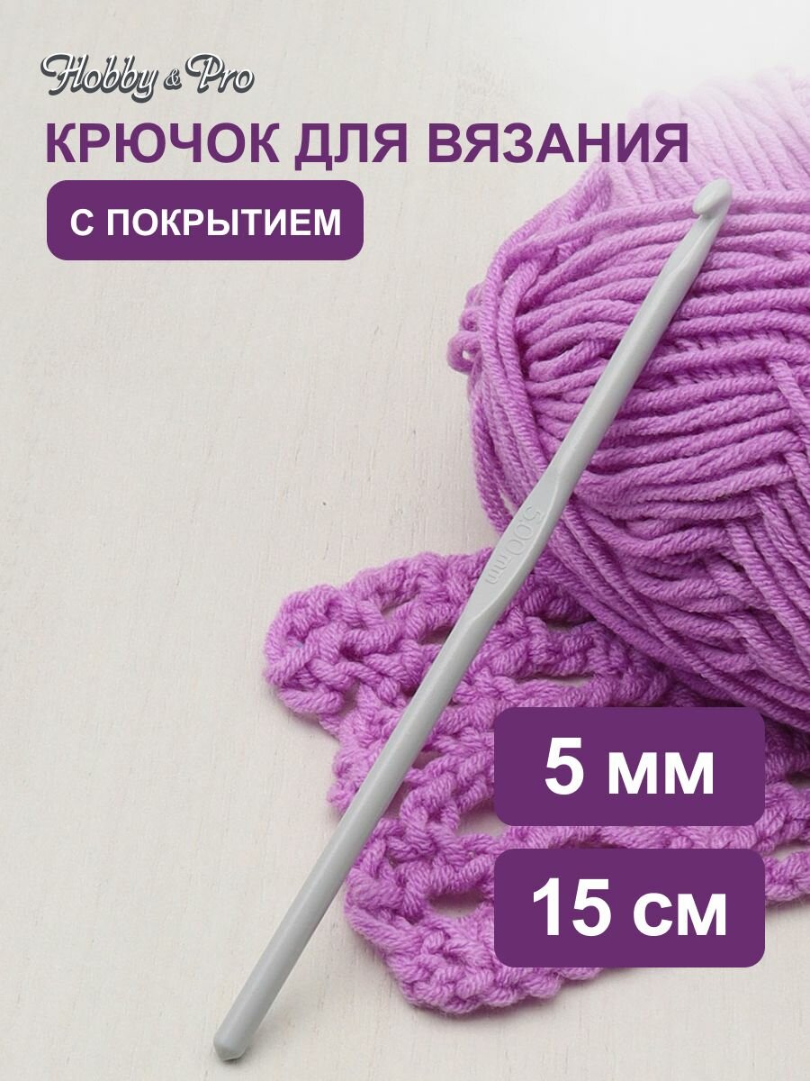 Купить Крючок для вязания Hobby&Pro, 5мм*15см, алюминиевый с покрытием