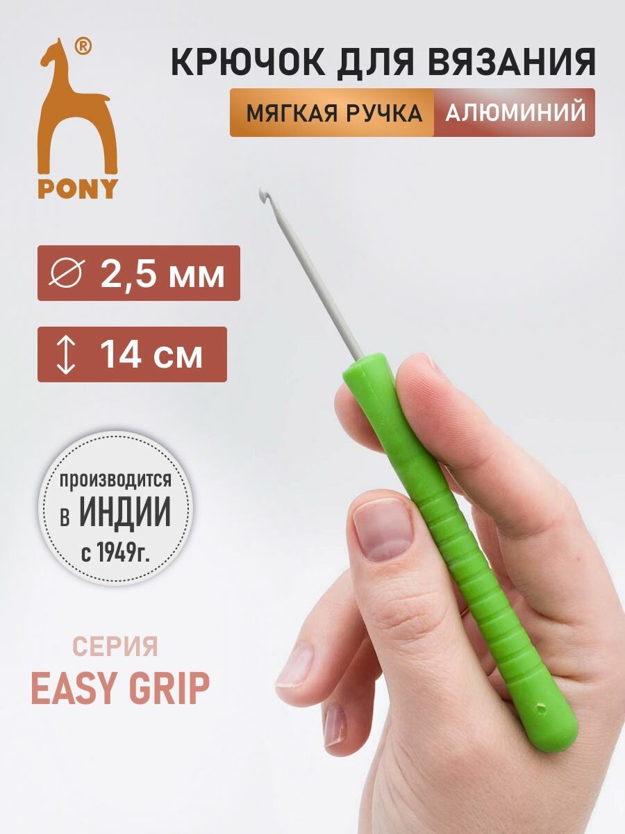 Купить Крючок для вязания с мягкой ручкой, 2,5мм*14см, алюминий, PONY, 56802