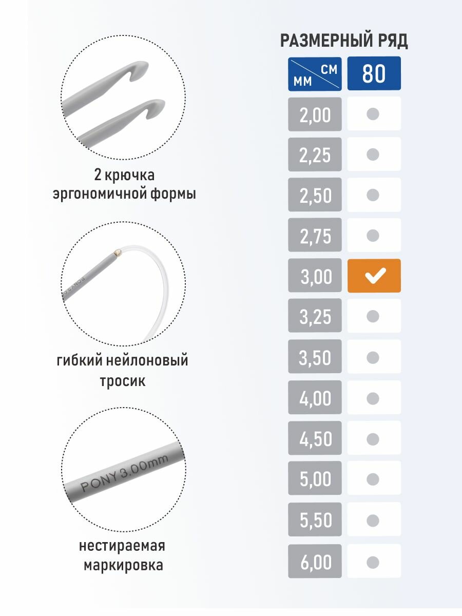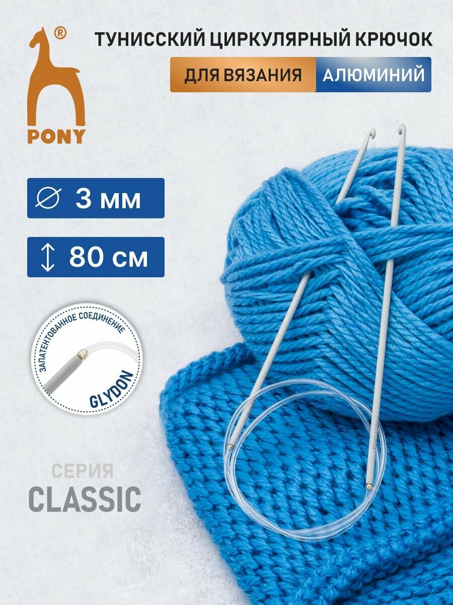 Купить Крючок для вязания циркулярный 3мм*80см, PONY, 56305, алюминий, пластик