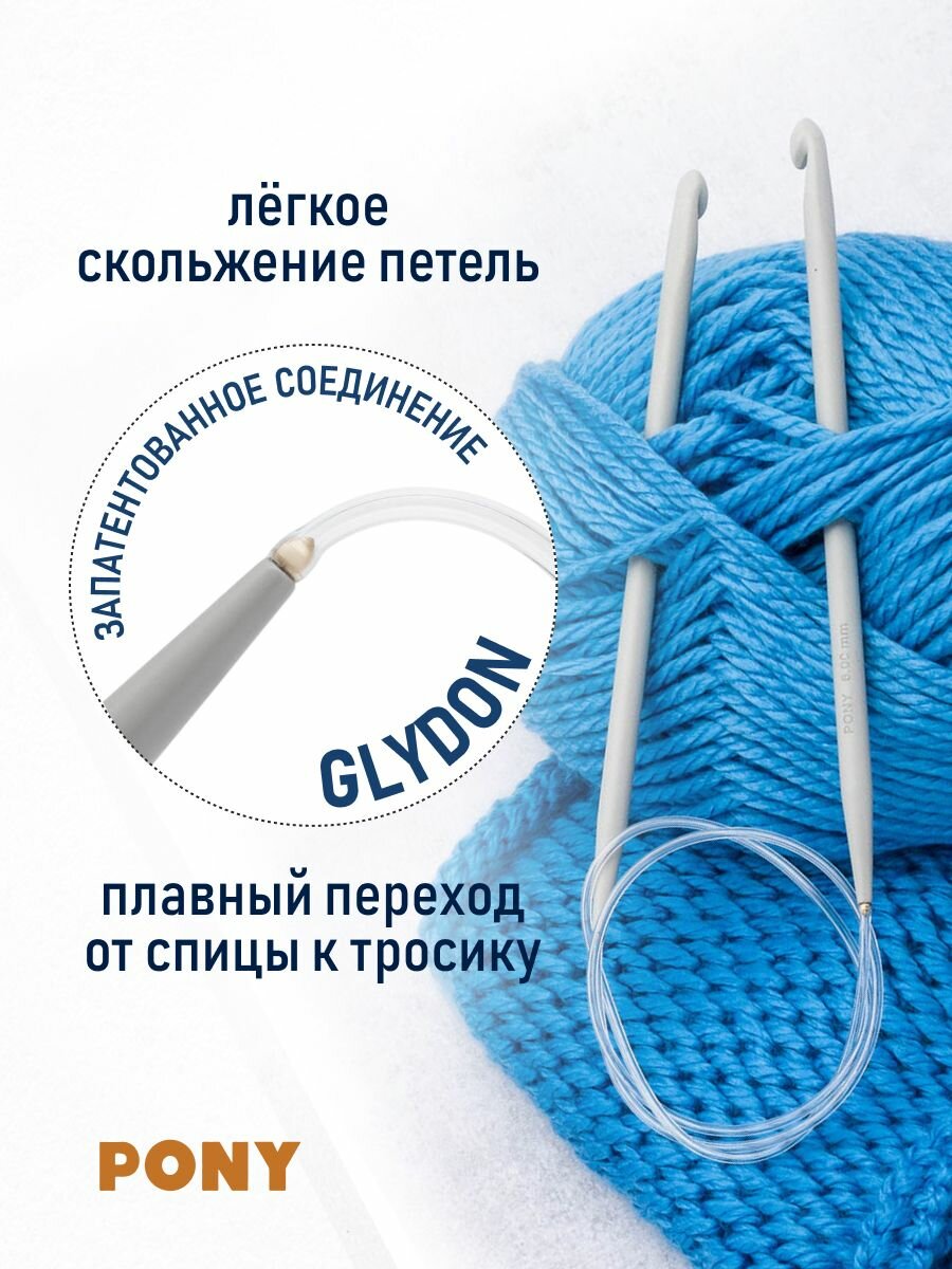 Крючок для вязания циркулярный 5мм*80см, PONY, 56311, алюминий, пластик
