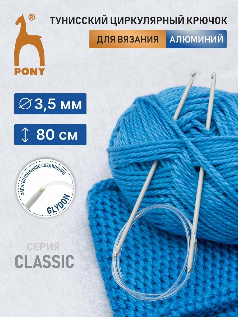 Купить Крючок для вязания циркулярный 3,5мм*80см, алюминий, пластик, PONY, 56307 (46907)
