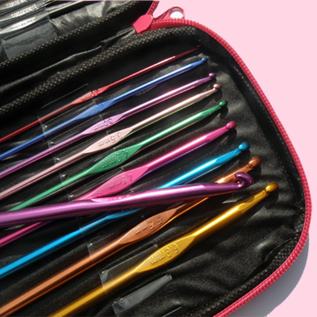 Купить Набор крючков для вязания разных размеров 22 шт в стильном розовом чехле — идеальный комплект для творчества!