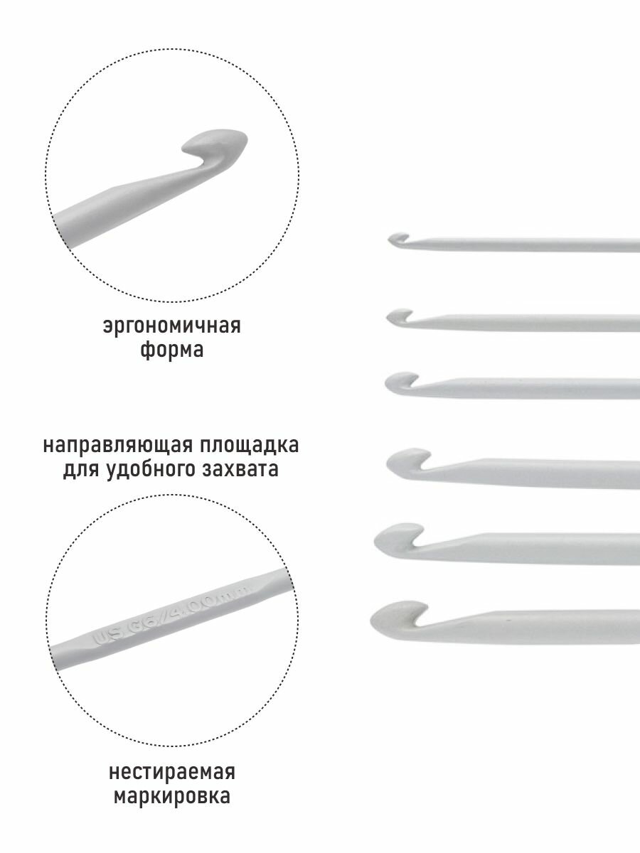 Набор крючков вязальных 2-5мм*15см (6 шт), алюминий (IN GO POUCH), PONY, 45229 интересное: