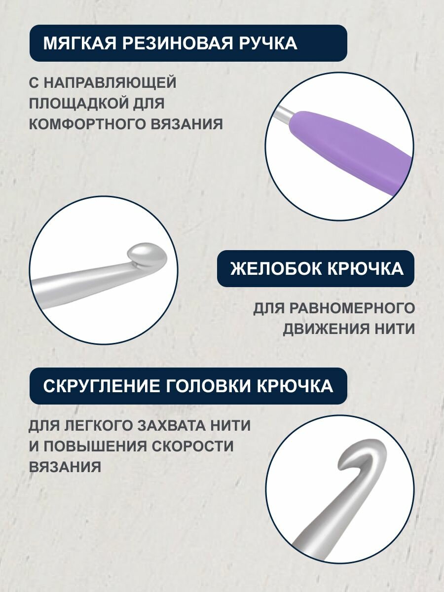 Крючок для вязания с резиновой ручкой, диаметр 5 мм, длина 13,5 см, Hobby&Pro, 24R50X