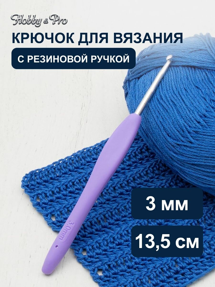 Купить Крючок для вязания с резиновой ручкой, диаметр 3 мм, длина 13,5 см, Hobby&Pro, 24R30X