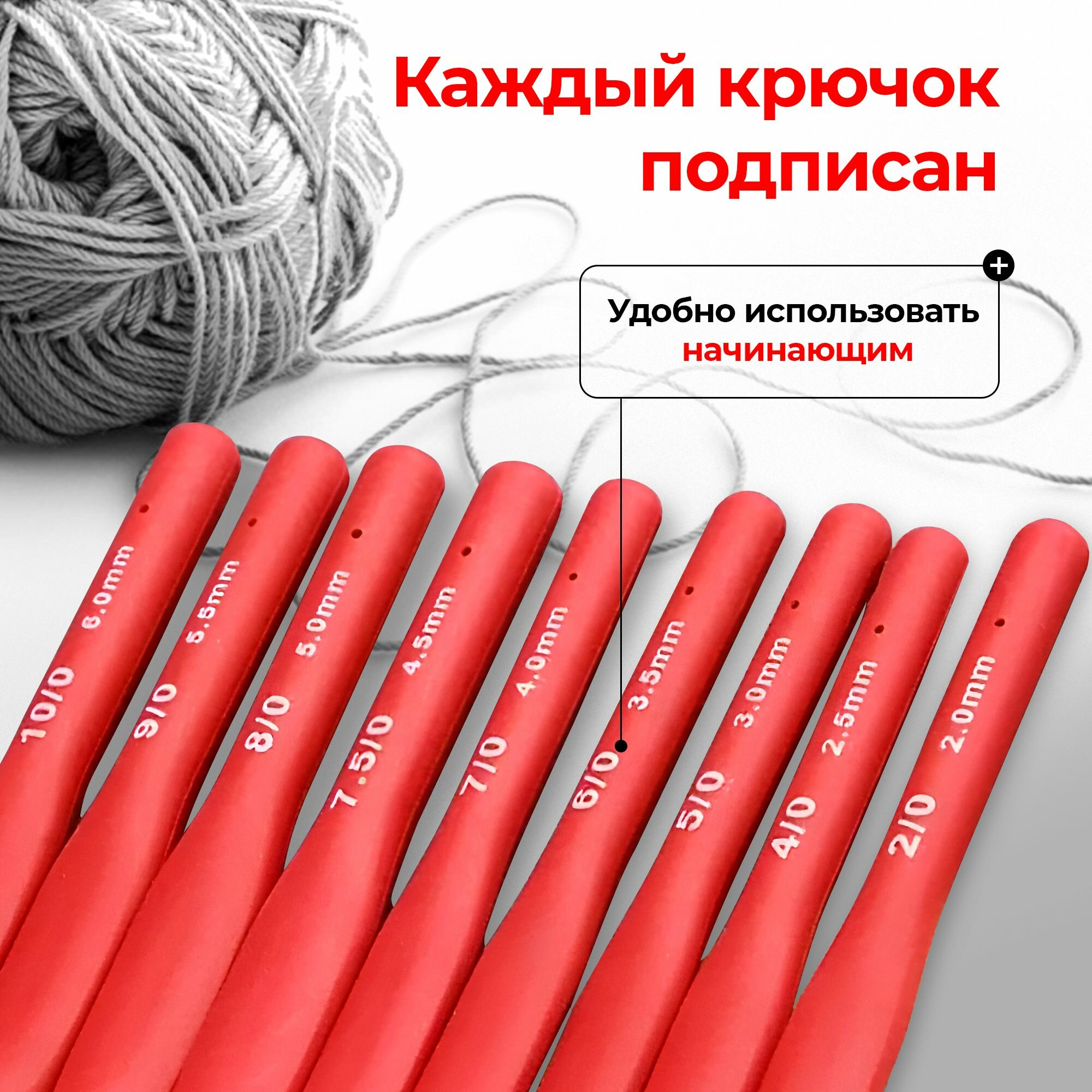 Набор крючков с силиконовой ручкой для вязания, d 2-6 мм, 13,5 см, 9 шт, цвет бордовый интересное: