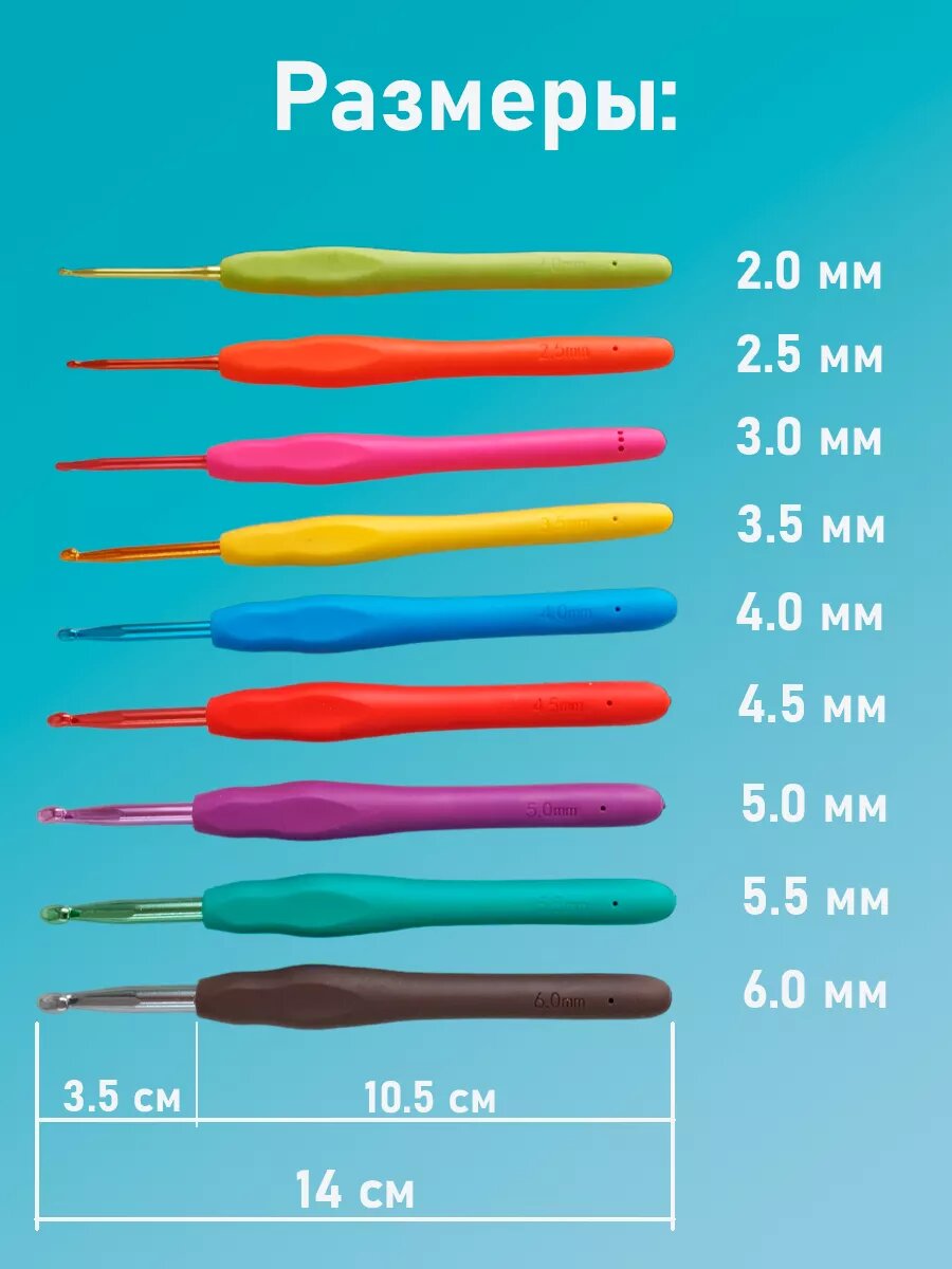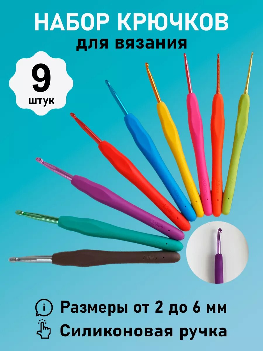 Набор крючков Decorland, 2,5 - 6 мм, для вязания, с силиконовой рукояткой, 9 шт