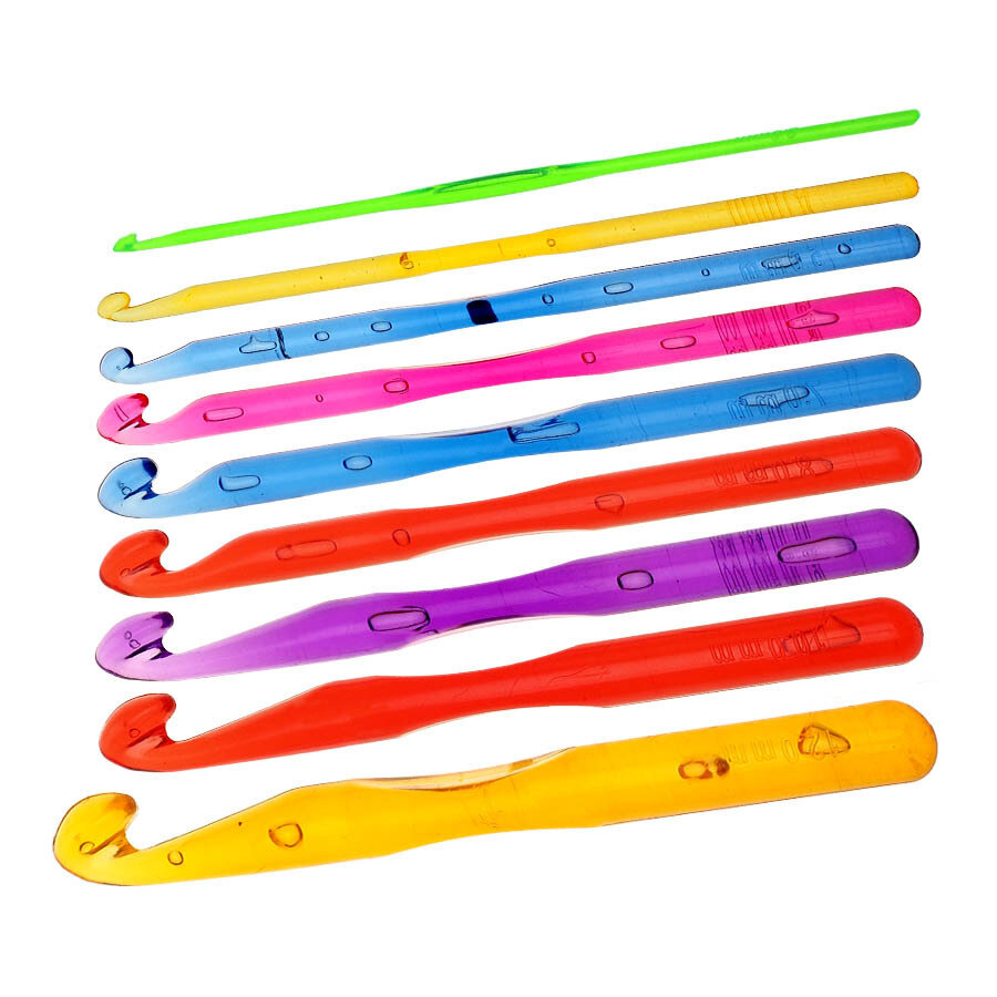 Набор крючков для вязания пластиковых "Карамель" (9 размеров: 3, 4, 5, 6, 7, 8, 9, 10 12) интересное: