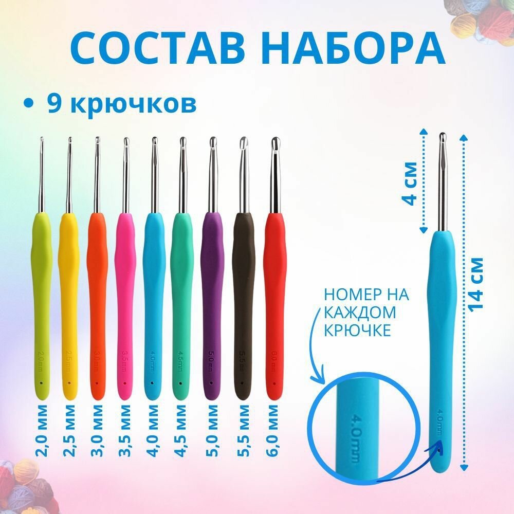 Набор крючков для вязания в чехле, 16 предмета. Крючки для вязания тонкие и толстые набор.