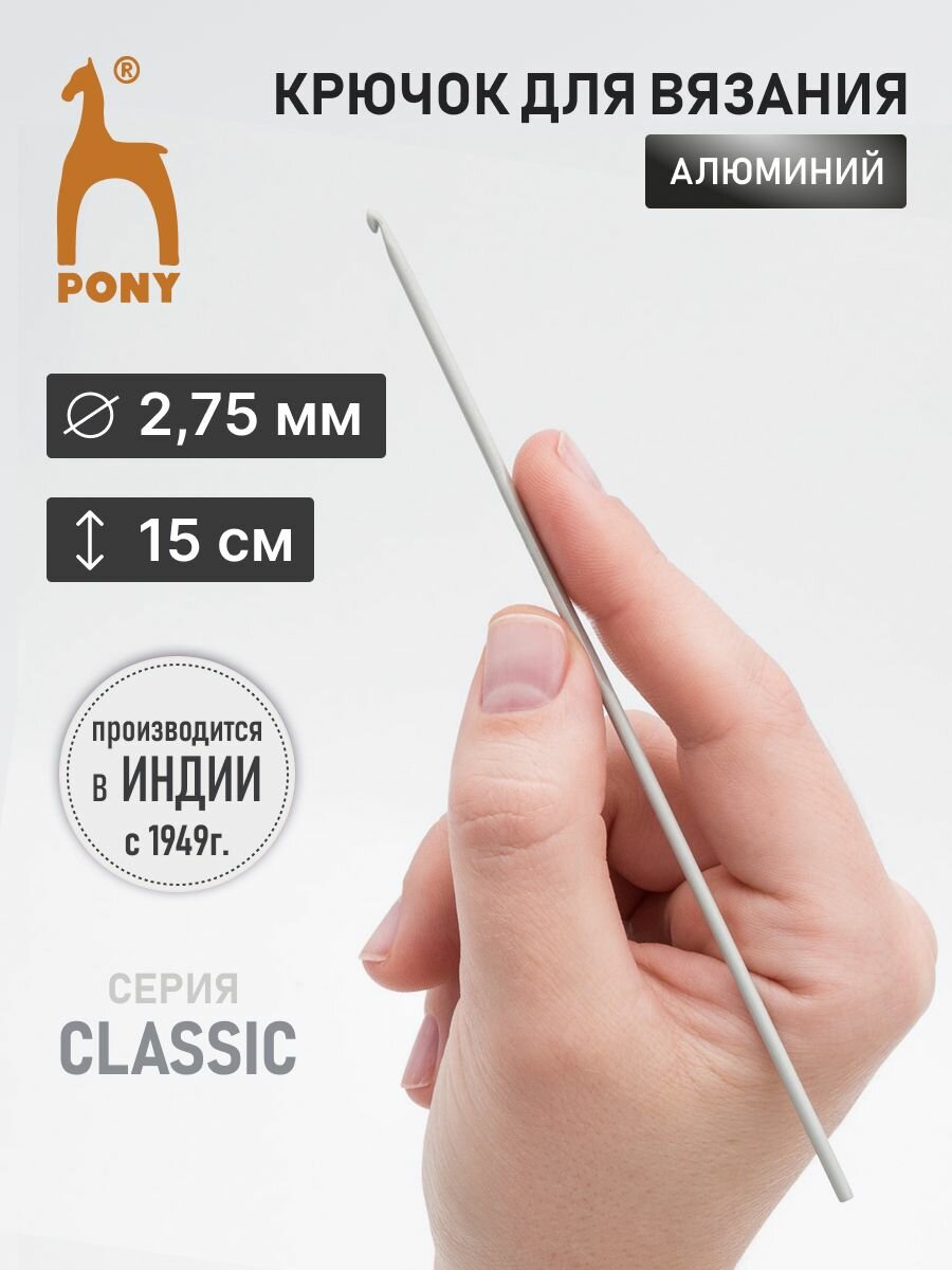 Купить Крючок для вязания PONY, длина 15 см, диаметр 2,75 мм, алюминиевый
