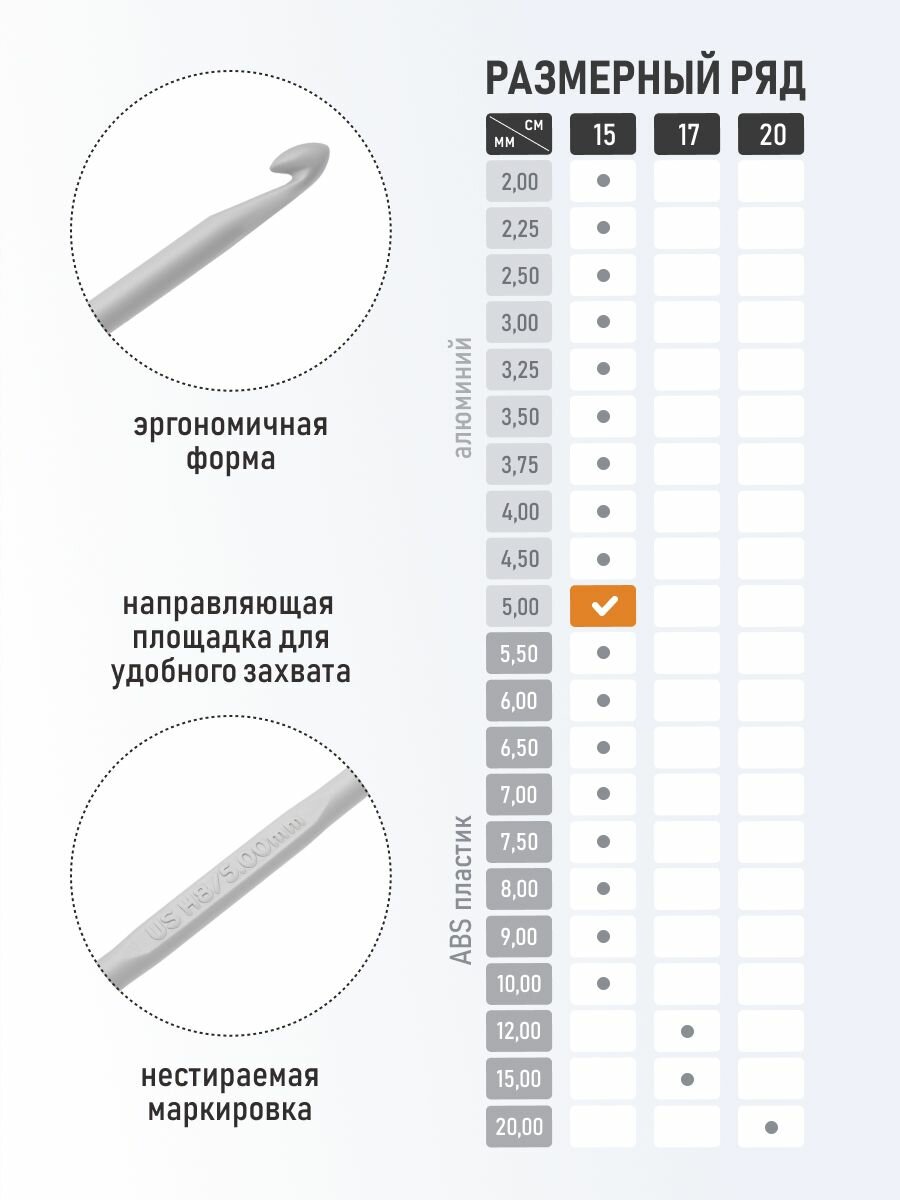 Купить Крючок для вязания PONY, длина 15 см, диаметр 5 мм, алюминиевый