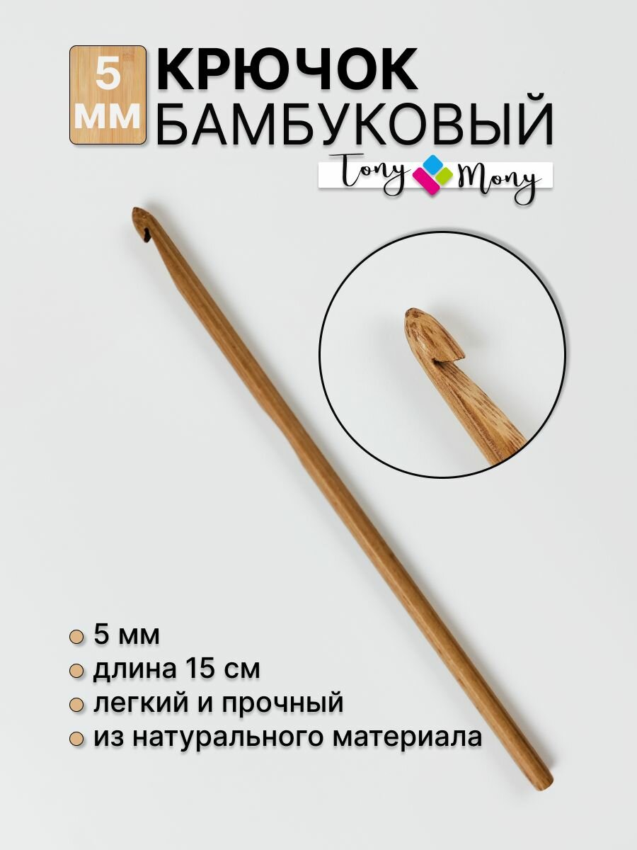Крючок для вязания бамбуковый TonyMony 5,5 мм 15 см