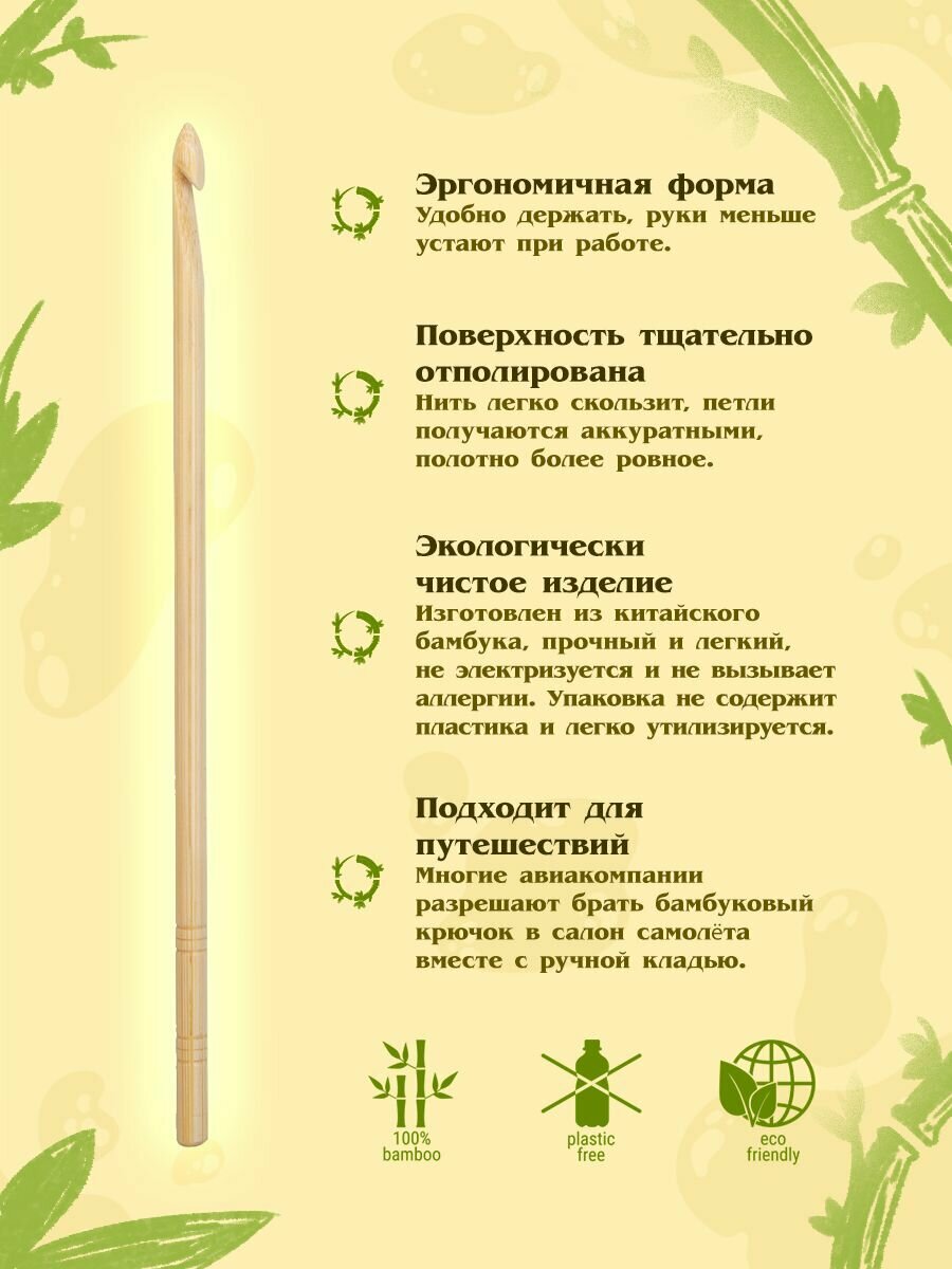 Крючок для вязания, бамбук, 4,5мм/15см, Prym, 197605