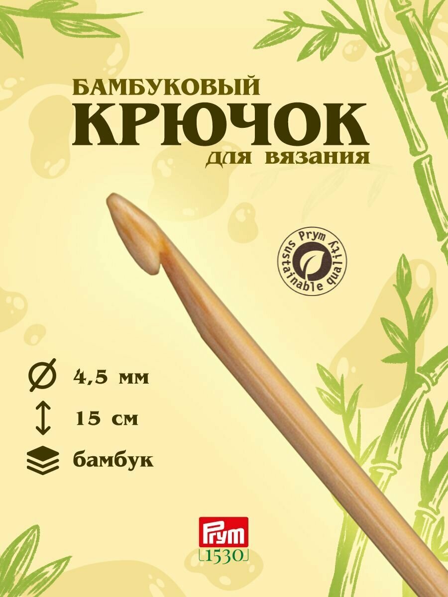 Купить Крючок для вязания, бамбук, 4,5мм/15см, Prym, 197605