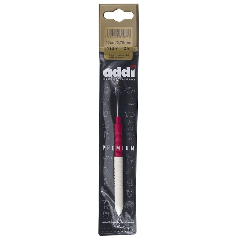 Крючок для вязания Addi, экстратонкий с пластиковой ручкой, №1.25, 13 см