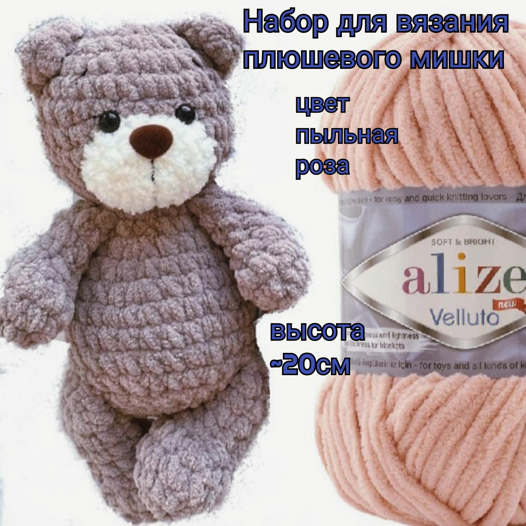 Купить Набор для вязания игрушки из плюшевой пряжи Мишка пыльная роза
