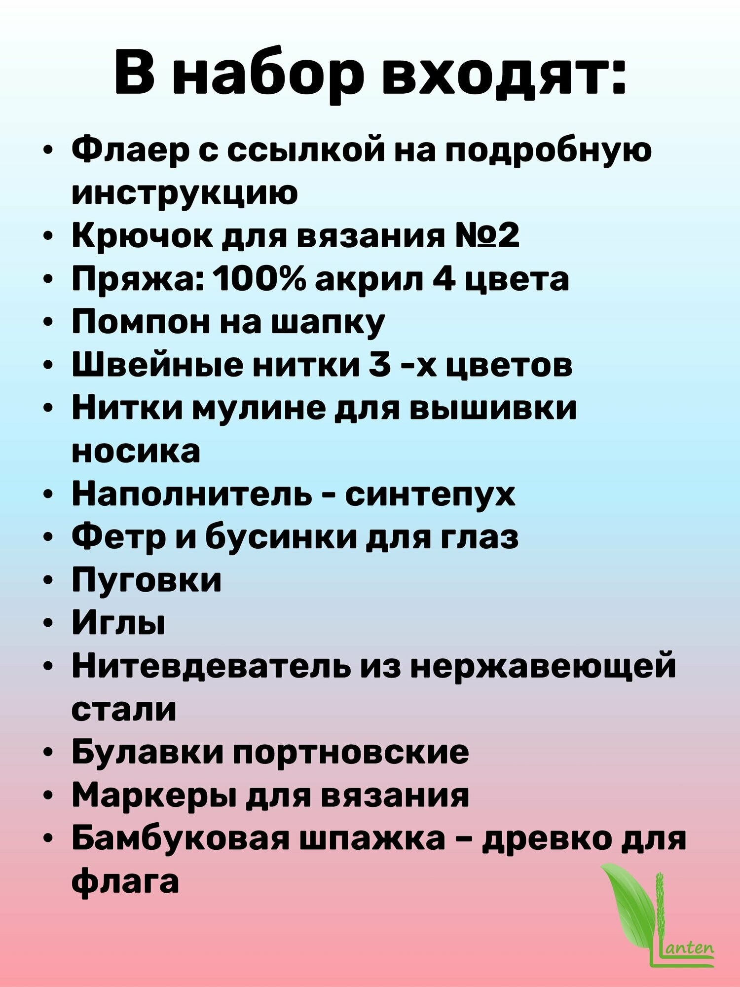 Набор для творчества, вязания крючком мягкой игрушки Кот-Патриот интересное: