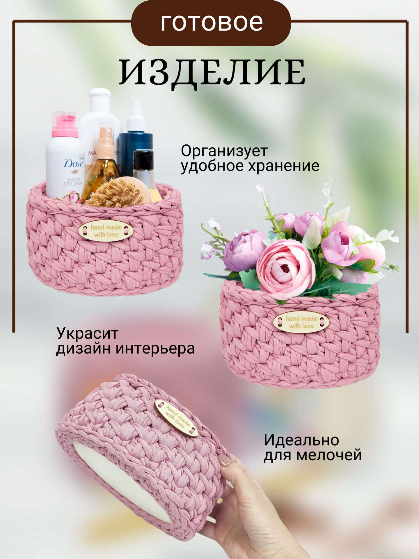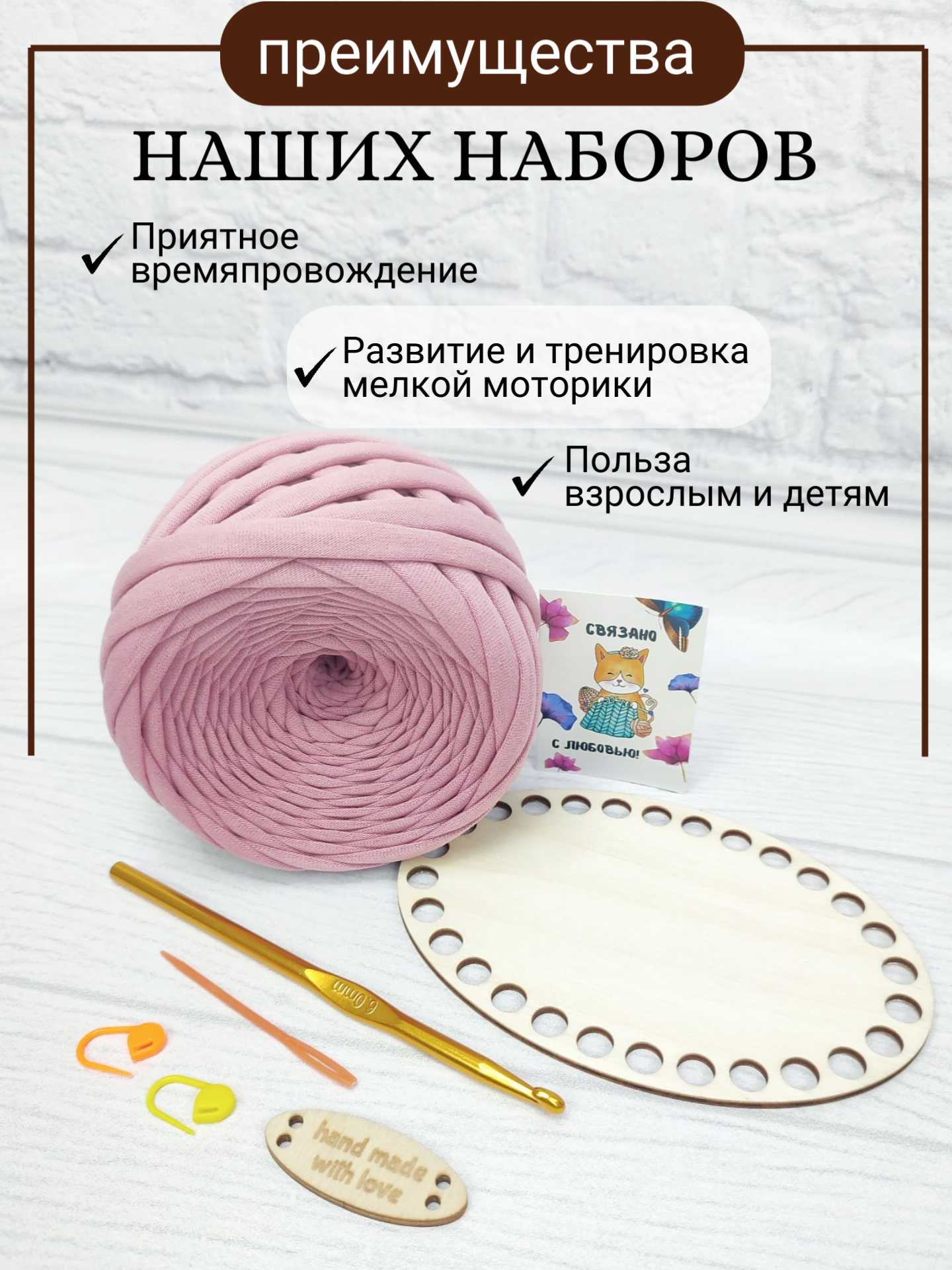 Набор для вязания крючком "Сиреневый слон" овальная корзина, цвет "Чайная роза" интересное:
