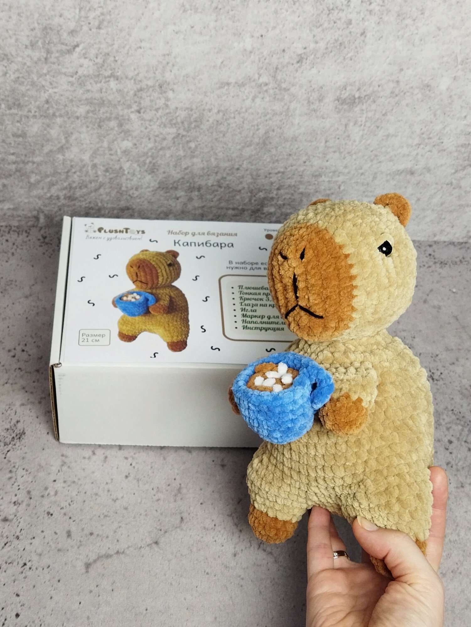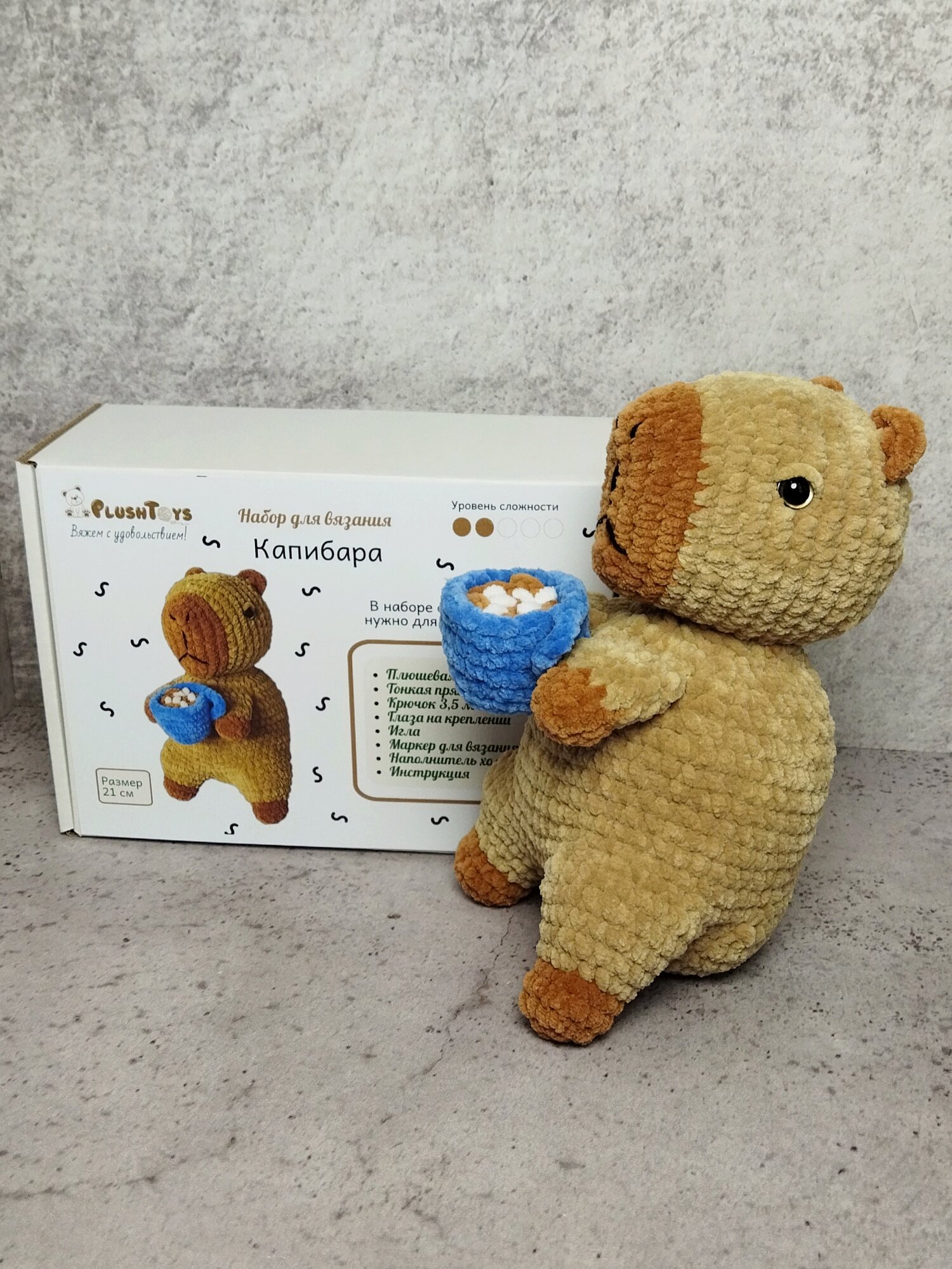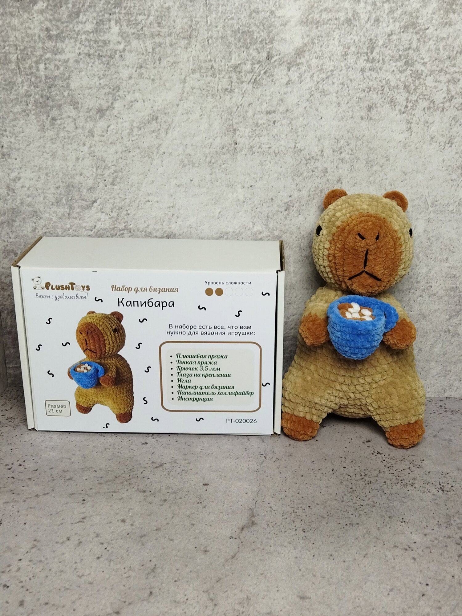 Купить Набор для вязания игрушки крючком «Капибара с чашкой», 21 см