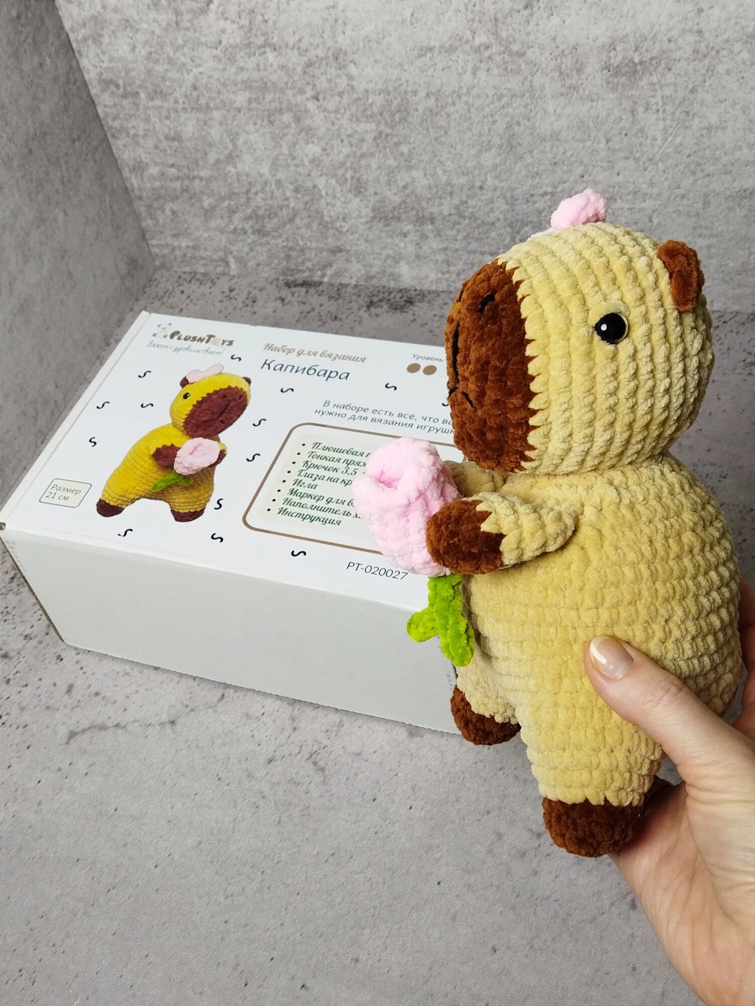 Купить Набор для вязания игрушки крючком «Капибара с цветком», 21 см