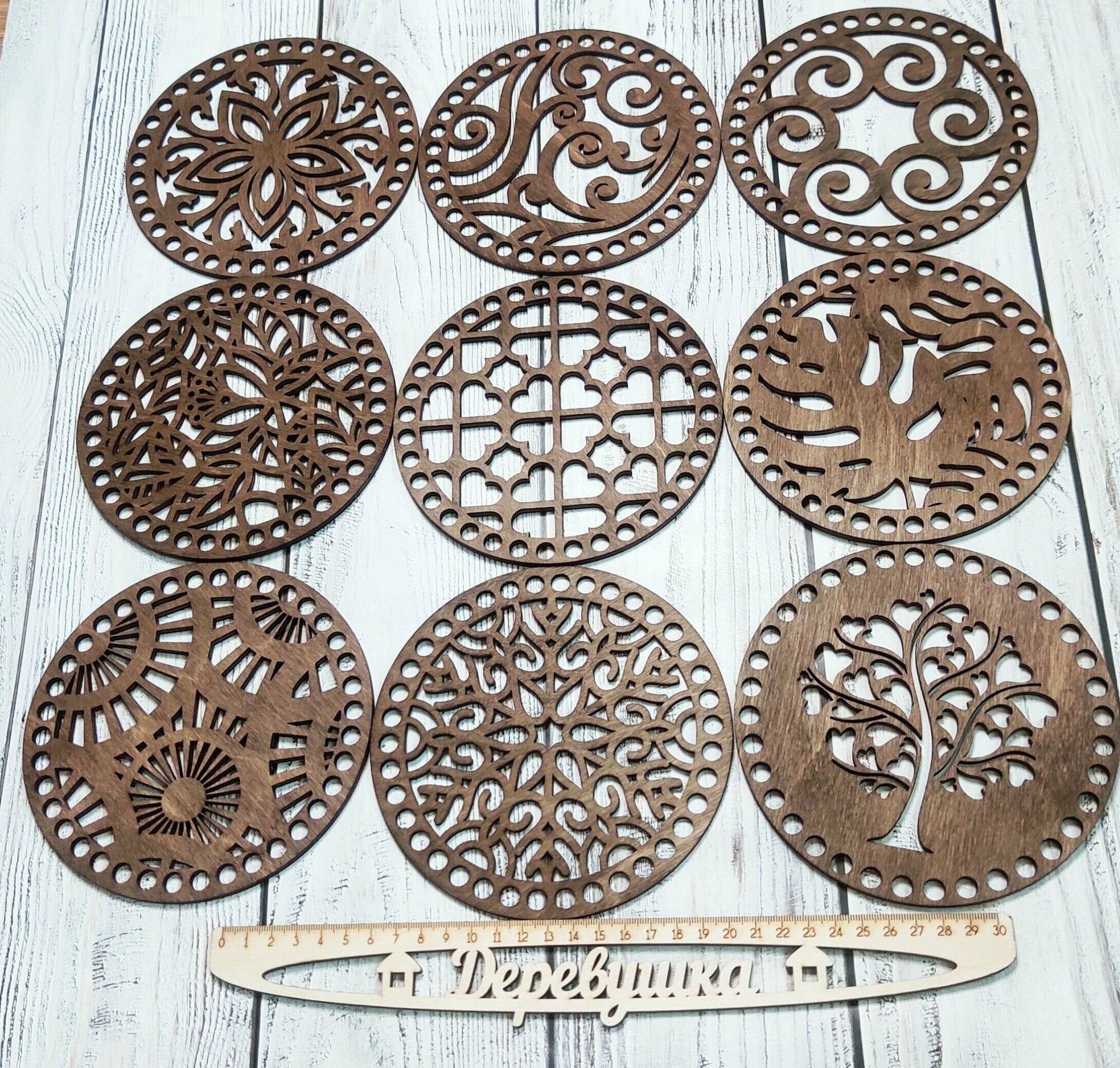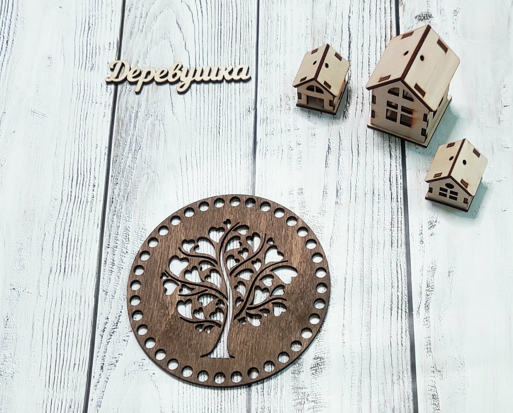 Набор для вязаной корзинки Дерево, дно и крышка 15 см, фанера. Донышки для вязания корзинки. интересное: